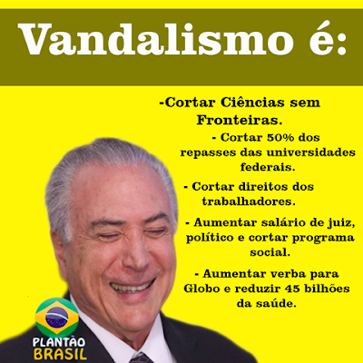 O governo golpista de Temer através da mídia burguesa, tentam convencer a população de que a reação de rejeição popular a esse golpe é vandalismo